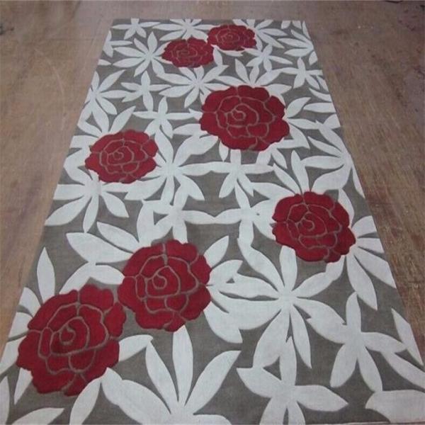 Product Name : Red rose hand carved new zealand wool area rug